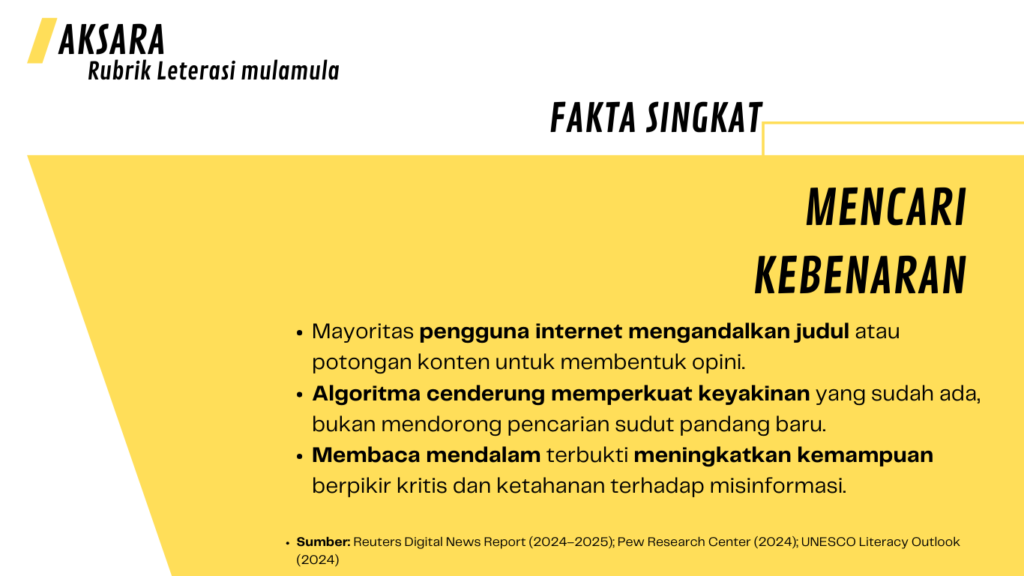 - Aksara adalah rubrik khusus mulamula.id yang hadir setiap akhir pekan untuk menggugah publik agar kembali ke khitah ilmu, yakni membaca, memahami, dan berpikir. Lewat tulisan reflektif, satir, hingga inspiratif, Aksara mengingatkan bahwa peradaban besar tidak lahir dari kecepatan scroll, tapi dari halaman yang dibaca dengan sabar.
