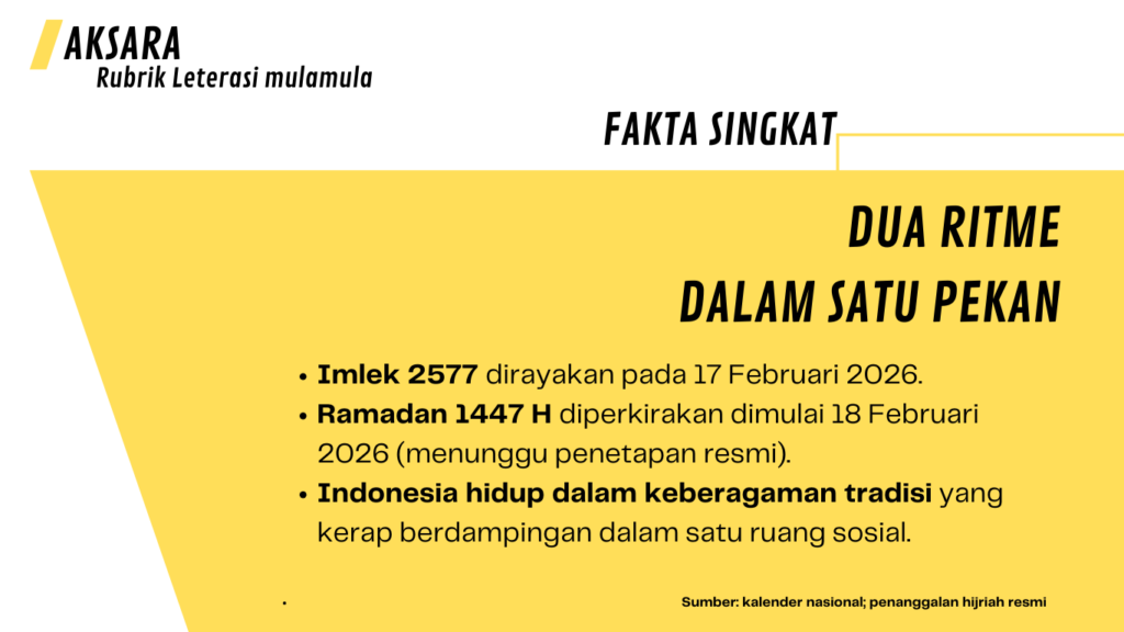 PADA 17 Februari 2026, warga keturunan Tionghoa merayakan Tahun Baru Imlek 2577. Sehari setelahnya, jika tidak ada perubahan penetapan resmi, umat Islam memasuki awal Ramadan.