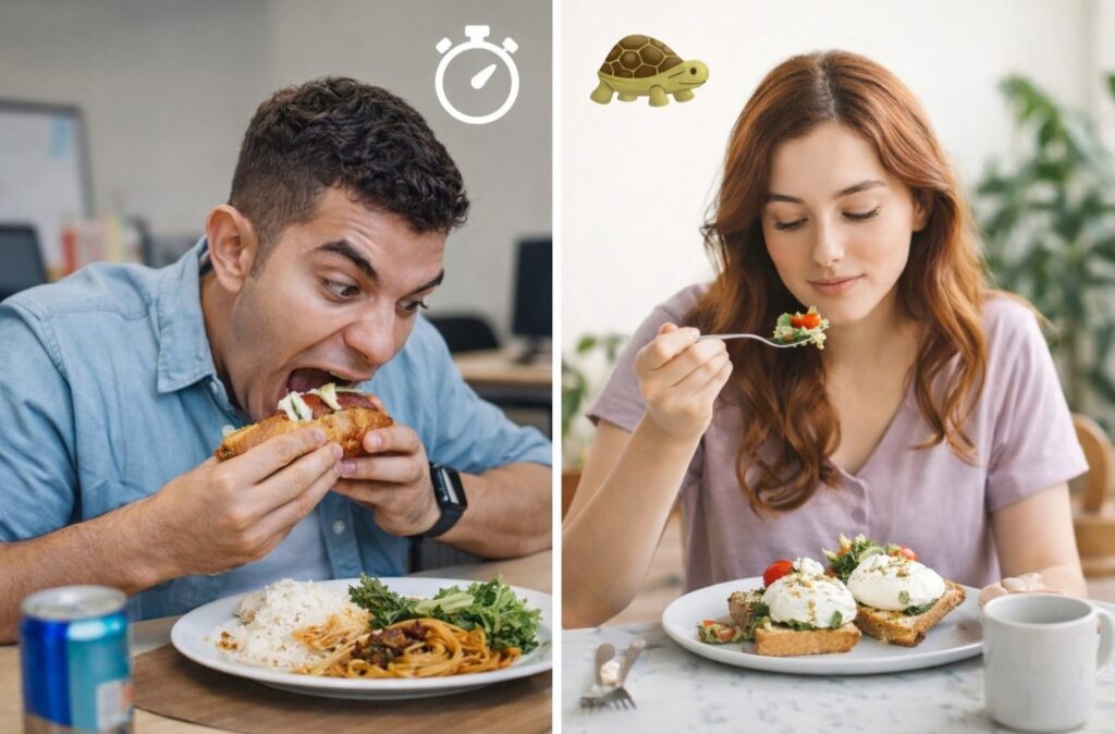 Perbedaan ini bukan hal sepele. Sejumlah studi menunjukkan, kecepatan makan bisa berkaitan dengan cara berpikir, mengambil keputusan, hingga mengelola tekanan.