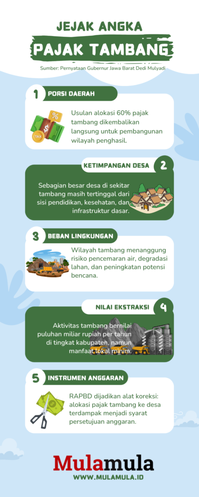 Gubernur Jawa Barat Dedi Mulyadi menyoroti persoalan lama dalam pengelolaan pertambangan. Pajak dan manfaat ekonomi dari tambang, menurutnya, tidak benar-benar kembali ke daerah asal. Akibatnya, wilayah penghasil sumber daya alam justru menanggung beban sosial dan lingkungan.