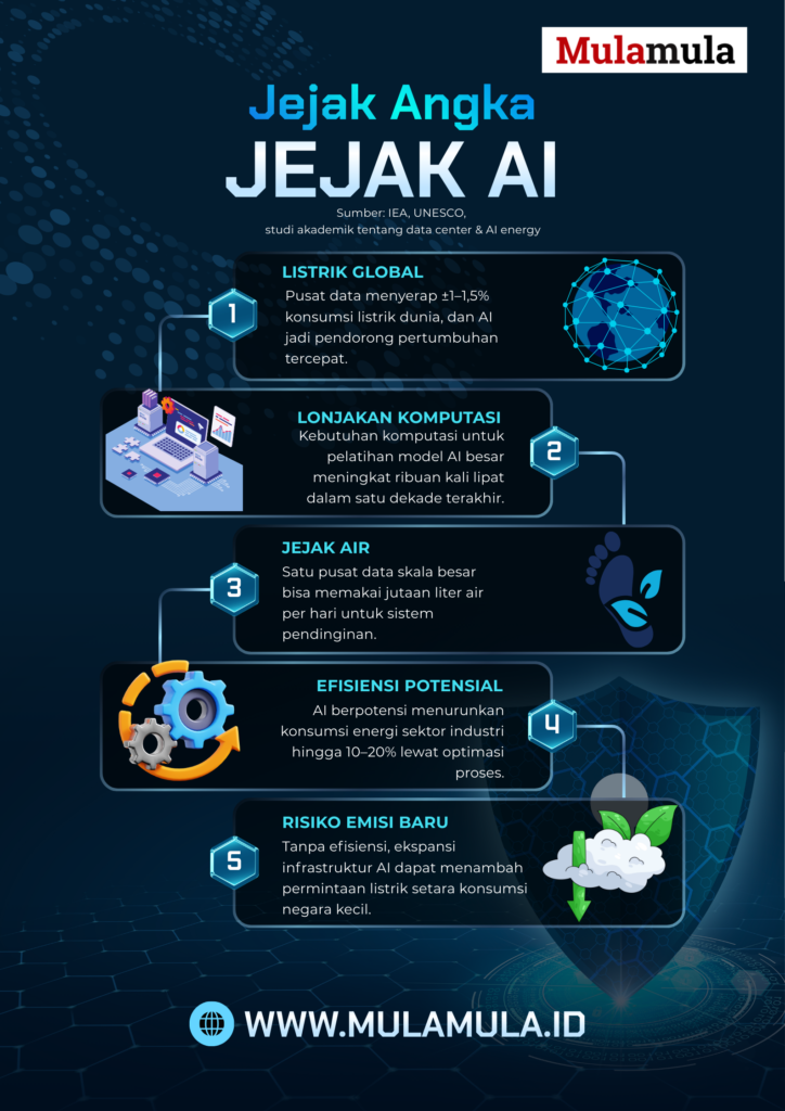Pendekatan ini penting, terutama bagi negara berkembang. Jangan sampai adopsi AI justru membuat tagihan energi melonjak dan emisi bertambah.