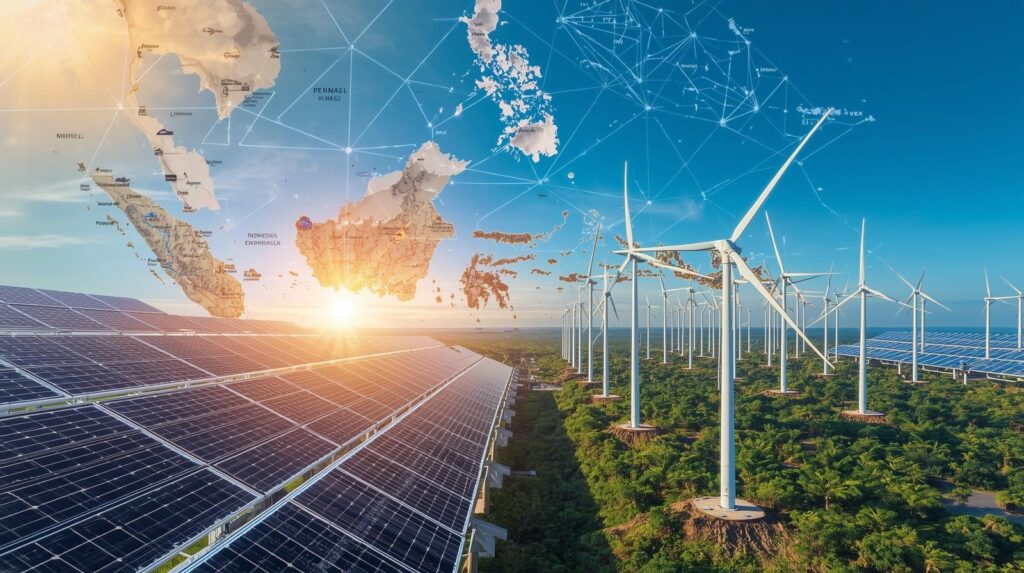 Pembangkit listrik tenaga surya dan turbin angin menggambarkan peta jalan energi bersih Indonesia menuju 2050. Foto: Ilustrasi/ Dok. SustainReview.ID.