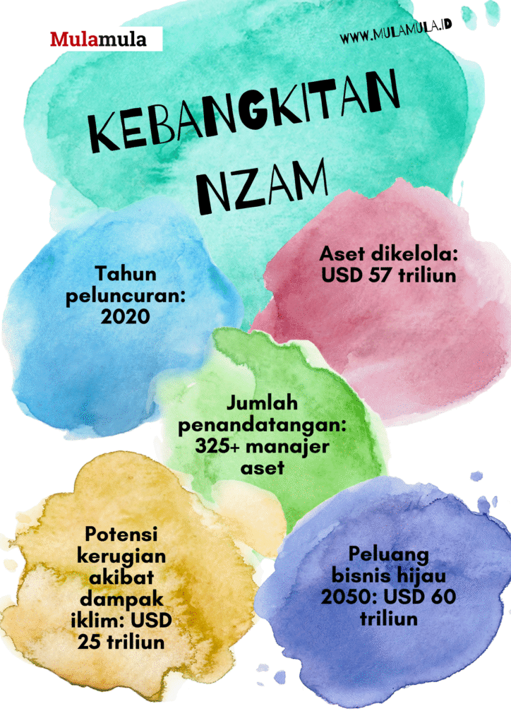 NZAM berdiri tahun 2020 sebagai koalisi manajer aset global yang mengelola investasi hijau bernilai raksasa. Awalnya, hanya 30 manajer aset dengan total dana sekitar USD 9 triliun. Dalam empat tahun, jumlah itu melonjak pesat menjadi 325 lebih penandatangan, dengan total aset kelolaan menembus USD 57 triliun.