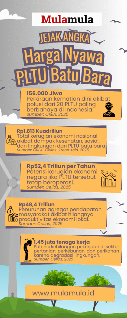 Artinya, tiap kilowatt listrik yang dihasilkan dari batu bara membawa beban tak kasat mata—udara yang kian sesak dan generasi yang tumbuh dalam lingkungan tak sehat.