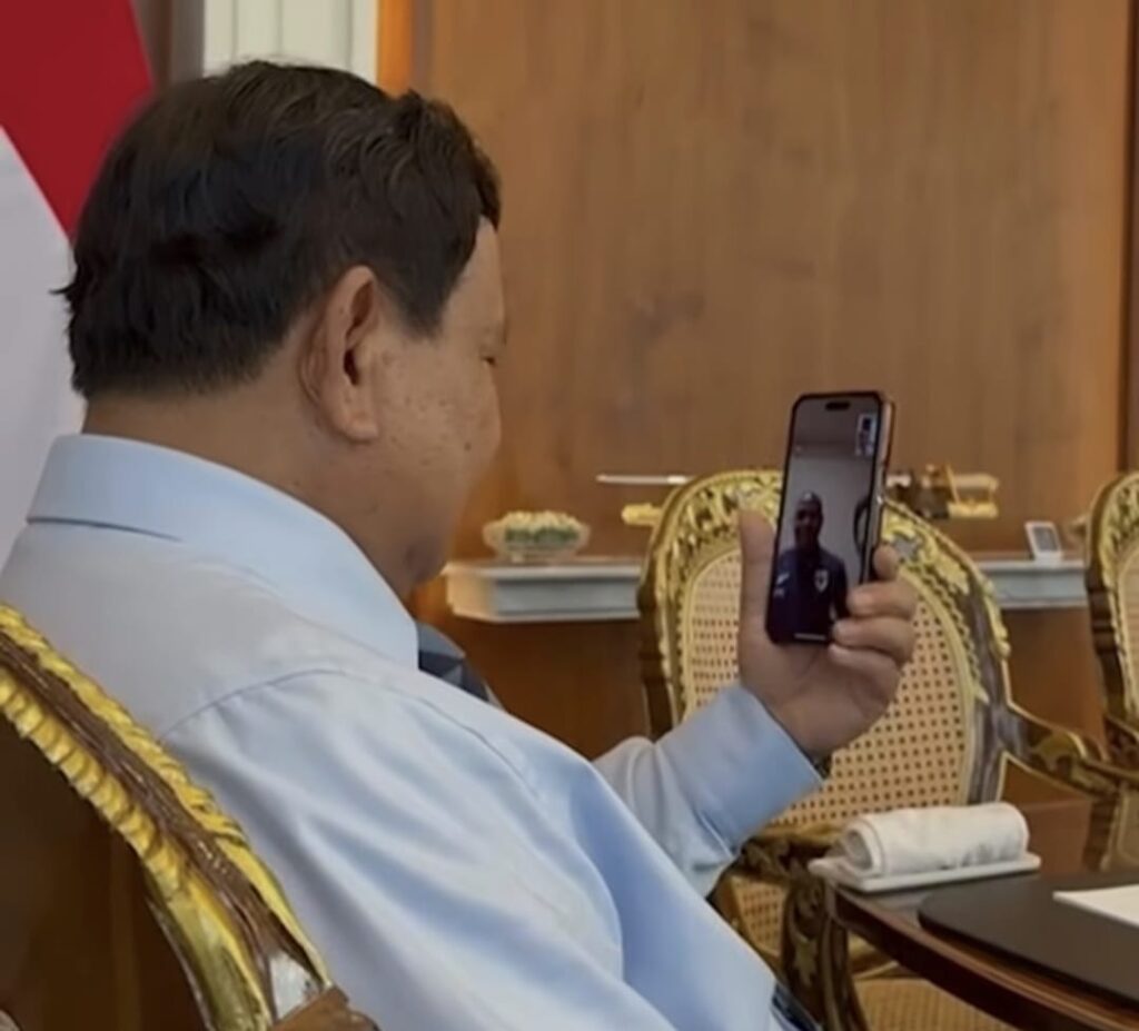 Presiden Prabowo Subianto berbicara langsung lewat panggilan video dengan pelatih Timnas Indonesia, Patrick Kluivert, untuk menyemangati skuad Garuda jelang laga kontra Arab Saudi. Foto: Instagram/ sekretariat.kabinet.