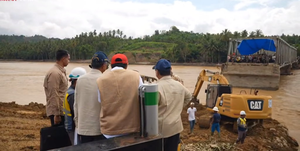 Salah satu titik terpenting yang ditinjau Prabowo adalah Jembatan Bailey Teupin Mane di Bireuen. Akses vital itu putus 11 hari lalu dan membuat arus logistik, evakuasi, serta jalur menuju Takengon tersendat.