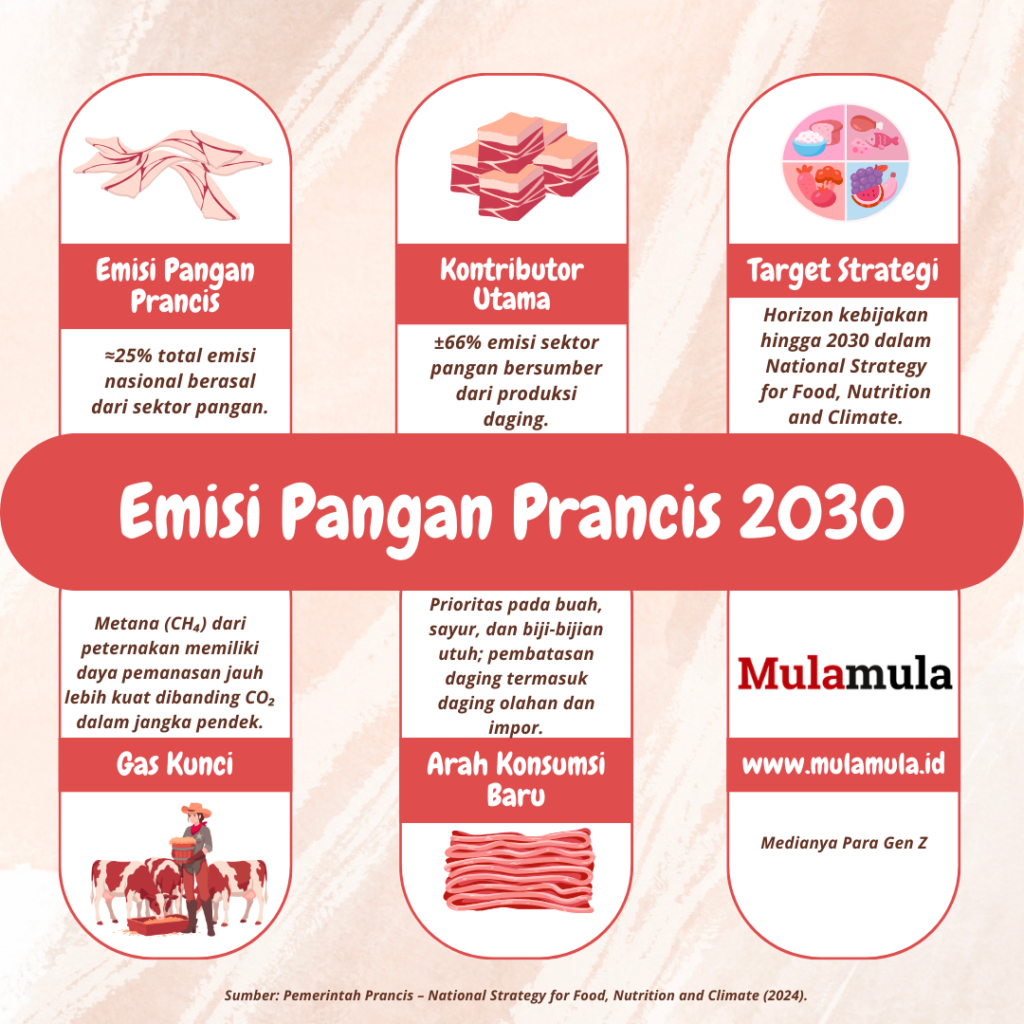 Langkah Prancis memberi pesan jelas. Perubahan iklim tidak hanya ditangani lewat energi dan transportasi. Apa yang ada di piring kita juga ikut menentukan.