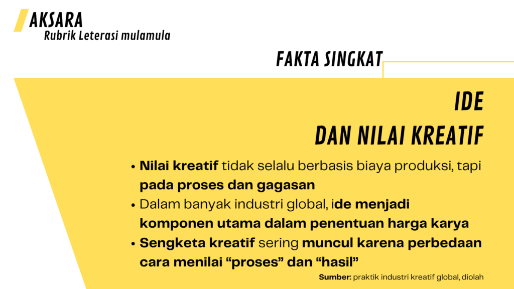 Menghargai ide bukan hanya soal membayar jasa. Tapi, soal mengakui bahwa berpikir juga adalah kerja. Bahwa kreativitas bukan sesuatu yang muncul begitu saja, melainkan hasil dari pengalaman, latihan, dan refleksi panjang.