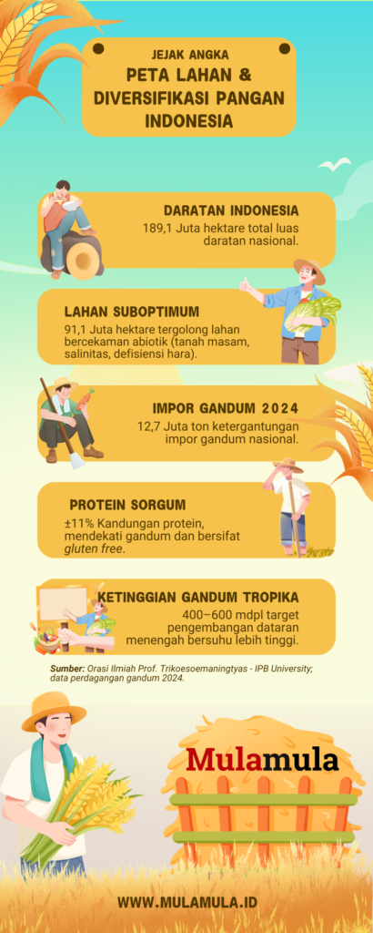 Karena itu, diversifikasi komoditas dan pengembangan varietas adaptif jadi penting. Sorgum dan gandum tropis bisa jadi bagian dari solusi jangka panjang.