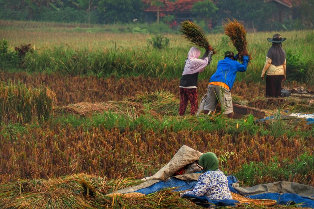 Petani memanen padi di tengah tantangan kondisi lahan dan cuaca yang terus berubah. Di balik sepiring nasi, ada kerja keras yang tak sederhana. Foto: Ilustrasi/ Ruyat Supriazi/ Pexels.