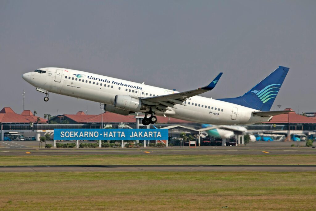 Pesawat Garuda Indonesia lepas landas dari Bandara Internasional Soekarno-Hatta, Jakarta. Sejumlah penerbangan Indonesia ke Timur Tengah dibatalkan imbas penutupan wilayah udara akibat konflik Israel-AS dan Iran. Foto: Ilustrasi/ Jeffry Surianto/ Pexels.
