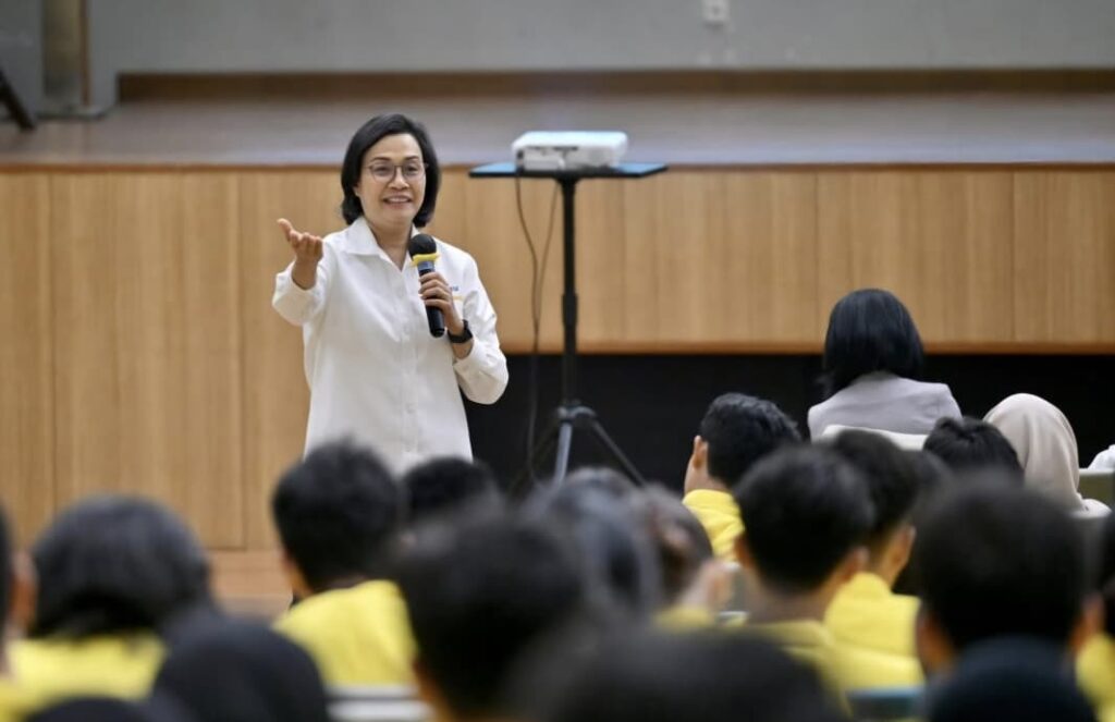 Sri Mulyani Indrawati saat berbicara di hadapan mahasiswa FEB Uuniversitas Indonesia. Mantan Menteri Keuangan itu kini bergabung dalam Dewan Direksi Gates Foundation. Foto: @smindrawati.