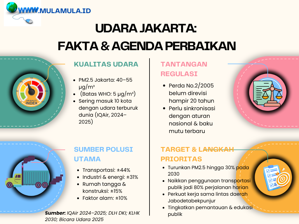 POLUSI udara kembali jadi sorotan di ibu kota. Organisasi non-profit Bicara Udara (Yayasan Udara Anak Bangsa) mendesak Pemerintah Provinsi (Pemprov) DKI Jakarta segera merevisi Peraturan Daerah (Perda) Nomor 2 Tahun 2005 tentang Pengendalian Pencemaran Udara yang sudah hampir dua dekade tak berubah.