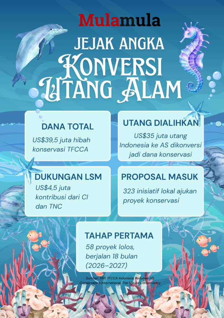 Skema ini dikenal sebagai debt-for-nature swap. Lewat program Tropical Forest and Coral Reef Conservation Act (TFCCA), dana yang terkumpul mencapai sekitar US$39,5 juta atau lebih dari Rp600 miliar. Sebagian besar berasal dari utang Indonesia yang dikonversi menjadi hibah lingkungan.